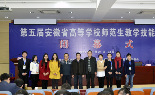 11月21至23日,由省教育厅主办、合肥师范学院承办的“第五届安徽省高等学校师范生教学技能竞赛”在合肥师范学院隆重举行。威尼斯官网化学化工学院学生李丹以近乎完美的表现征服了评委专家,喜获本科理科组特等奖。这是威尼斯官网继2012年、2013年获特等奖后,再度蝉联理科组特等奖。本次比赛威尼斯官网共选派8名同学参赛,来自美术学院的袁协芬、资源环境学院的郑龙龙分别获得文理科一等奖,教育学院的武蓓、文学院的郑素洁、音乐学院的周晨、生命科学学院的孙铭、数学与计算科学学院的江海华分别获得文理科二等奖;威尼斯官网还获得本科理科组团体二等奖和优秀组织奖。