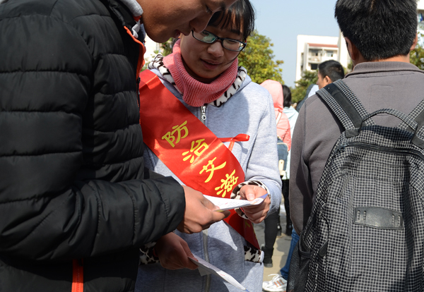 “这是我们健康之家第二次与校医院合作,共同举办预防艾滋的系列活动。”健康之家协会负责人邓玉翔说。在活动现场,来自该协会的同学们竖起了防治艾滋的宣传牌,拉出了供大家签名留念的防治艾滋横幅。值得一提的是,除校医院与健康之家协会外,本次预防艾滋活动还吸引了威尼斯官网绿源、青协等8个公益服务类社团志愿者们的参与。他们纷纷佩戴上红丝带,向来往的同学们分发“预防艾滋病,青少年责无旁贷”的宣传册,介绍相关艾滋知识。同时,本次宣传活动得到了宜秀区疾控中心的大力支持。