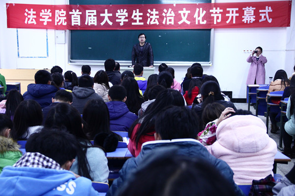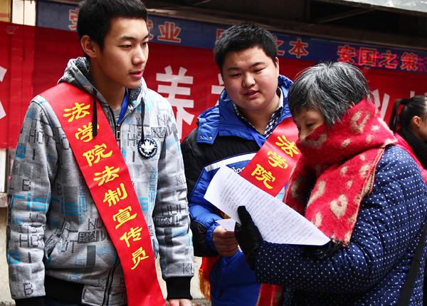 当天上午,由近百名法学院学生组成的10支小分队,从学校出发走进农村、社区、学校和车站宣传宪法知识。