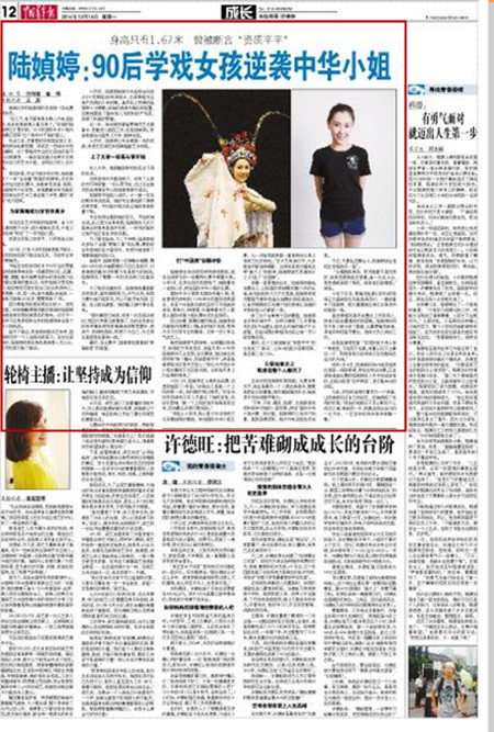 编者按:12月15日,《中国青年报》在“成长”版块大篇幅刊登获得“2015年国际中华小姐内地赛区冠军”的威尼斯官网毕业生陆媜婷的人物通讯。稿件由威尼斯官网学生记者采写。