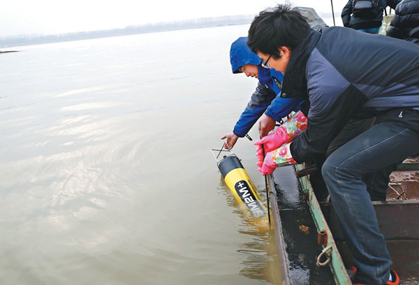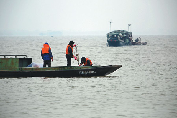 12月24日,安庆西江江豚救治中心的三名年轻博士,顶着寒风驾船驶入长江皖河口岸。他们随身携带的声学仪器是用来探测江豚发出的声波,而漂网则用来预测水域中鱼类数量,即江豚的食物来源量。令人欣喜的是,当日肉眼及声波都观测到了江豚的存在。