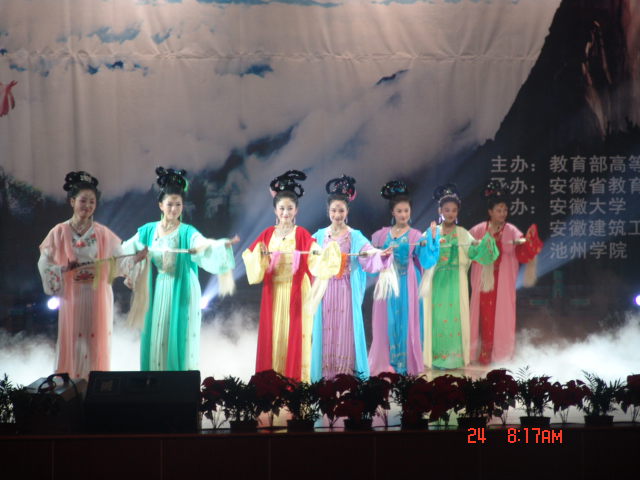 由大学生组成的黄梅戏艺术团,2009年被教育部遴选为“高雅艺术进校园”团队,自2009年至今已经走进20余所高校。近年来,黄梅戏表演本科专业的学生在国家级艺术大赛中获奖就达15人次。如在2012年全国首届黄梅戏广播大赛中,黄梅剧艺术学院2011级潘柠静同学作为唯一的在校生获得全国“十佳”大奖,2010级潘玲玲同学荣获最佳“新人”奖,2009级付亚红、2009级佘畅、2011级江李汇、2012级王媛等同学摘得“优秀演员”奖,学校获最佳组织奖。在中央电视台戏曲频道和安徽广播电视台联合举办的“2013寻找七仙女”活动中,学院共有16名同学参加比赛,最终2011级黄梅戏表演班的潘柠静同学获得“金奖”,2010级潘玲玲同学获得“最佳潜力奖”。在全国性专业戏曲大赛“红梅杯”中,王泽熙同学获得“红梅金花”。这一切都说明国家级特色专业黄梅戏表演本科专业的建设,适应了皖江区域社会的发展需求以及文化强省、文化强国的战略诉求。(储著炎)