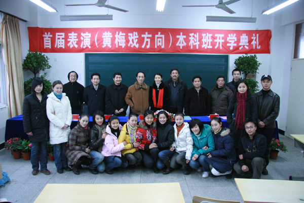 为了响应安徽省委、省政府提出的“打好徽字牌,唱响黄梅戏,建设文化强省”的文化强省战略,安庆师范学院经过广泛而深入的科学调研与专业论证,在省委、省政府的支持下,于2003年尝试与安徽省黄梅戏学校联合培养五年制表演、群艺等专业的专科生;2006年成立“黄梅剧艺术学院”,聘请中国戏剧家协会副主席、著名黄梅戏表演艺术家韩再芬任名誉院长,2007年首次招收表演(黄梅戏表演方向)专业本科生,同年,黄梅戏表演艺术实训基地获中央与地方共建高校中央专项资金资助,2008年黄梅戏表演本科专业荣获国家级特色专业称号,2009年黄梅戏本科复合型人才培养模式创新实验区荣获国家级人才培养模式创新实验区称号。安庆师范学院黄梅剧艺术学院的成立,使得黄梅戏艺术教育与人才培养模式体系形成了以高等教育为导向,以中等教育为基础,包括剧团培养、戏校教育、本科教育、正规学历教育、非学历进修教育、专业教育与业余普及等多种教育形式共生存、齐发展的教育格局。