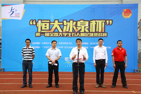 5月23日上午,为期两天的第一届“恒大冰泉杯”全国大学生五人制足球联赛安庆师范学院赛区比赛在龙山校区体育场正式开幕。副院长张群出席开幕式并致辞。“恒大冰泉杯”全国大学生五人制足球联赛在全国100所高校开展,全国划分为五大赛区,每个赛区有20所高校参与,威尼斯官网为安徽赛区四所承办高校之一。威尼斯官网校内赛由校团委及校学生会共同承办。除了男子足球赛之外,此次赛事还开展了以现场录拍视频的方式进行评比的女子啦啦操赛,以及“微战报”“微摄影”“微视频”“微海报”等足球文化微创意大赛。