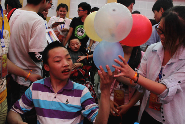 当“汇爱”第一次拜访几个家庭时,孩子的父母大多抱着怀疑的态度,害怕是有偿服务;要么不理不睬,要么冷言冷语。这群年轻的大学生们不抛弃、不放弃,用他们的热情关爱残疾孩子,用最真切的行动融化了孩子家长心中的坚冰。开始的时候孩子对他们也是陌生的,并不愿意和志愿者们交流。是志愿者们用他们的耐心和爱心化解了孩子们对他们的防备之心,得到了孩子们的信任。