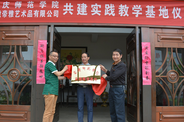 6月10日上午,“安庆师范学院、安徽帝雅艺术品有限公司共建实践教学基地”揭牌仪式在安徽帝雅艺术品有限公司举行。副院长张群出席揭牌仪式。教务处实践教学科负责同志、美术学院领导班子全体成员参加了本次活动。