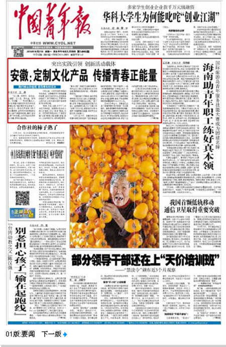 安徽:定制文化产品 传播青春正能量