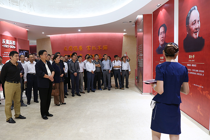 参观过程中,大家聚精会神地聆听解说,仔细观看每一块展板,丰富的图文资料和视频展示了中国共产党反腐倡廉历程和惩治腐败的坚强意志。通过观看中国共产党成立以来厉行反腐的珍贵历史图片,老一辈无产阶级革命家和焦裕禄、孔繁森、沈浩等先进典型事迹图片和视频,大家的精神又一次得到升华;触目惊心的违法违纪案例和《失去自由的日子》警示教育片,为大家再一次敲响了拒腐防变的警钟,强化了大家严以律己的思想自觉和行动自觉;模拟监房、服刑人员工作生活和探监室场景,带给党员干部强烈的心灵震撼——贪腐是洪水猛兽,不仅危害国家,而且危害自己和家庭。