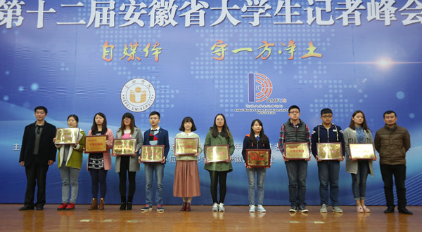 11月8日,以“自媒体 守一方净土”为主题的第十二届安徽省大学生记者峰会暨安徽青年报《大学生周刊》年度双十佳、主题征文、“好新闻奖”颁奖仪式在合肥学院隆重举行,近60所高校参加本次峰。威尼斯官网记者团荣获“2015年度安徽青年报《大学生周刊》‘十佳’学生记者站”称号,另有6篇稿件分获一、二、三等奖。