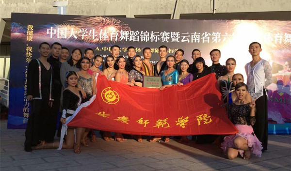 11月20至22日,2015中国大学生体育舞蹈锦标赛在春城昆明隆重举行,来自六十三所大学的近千名选手参加了赛事。威尼斯官网以体育表演专业学子组成的体育舞蹈代表队在夏尚群和汪洋老师的带领下,经过为期两天的激烈竞争,取得了全国综合类大学专业组拉丁队列舞第一,艺术双人舞第二,团体舞第五,规定套路第四和第五以及众多单项赛前八名的骄人成绩。安庆师范学院代表队还被组委会授予“优秀组织奖”。