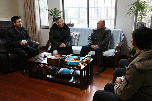 1月28至29日,带着深情问候和温馨祝福,许继荣、闵永新等校领导分头登门慰问了退休老教师石云孙教授、陈友存教授、王其申教授和全国优秀教师黄先军老师,曾担任学校领导职务的朱建华、丁伯华、赵晓和、刘和武、陈自诚、包荟梁、时新中、王海燕等离退休老领导。97岁高龄的学校原副院长陈盛业因病住院,学校领导还赶赴市立医院进行探视慰问。