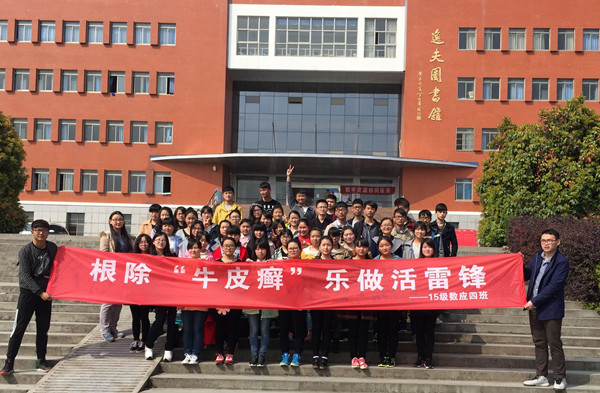 “学习雷锋好榜样……”雷锋精神不仅留在歌词的余温里,越来越多的人用自己的实际行动践行着这种不灭的精神。阳春三月,校园里刮起了一阵阵暖暖的“雷风”。数学院开展了为期一个月的“雷锋月”系列活动,传递雷锋精神。
