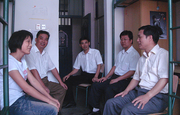 9月13日上午,党委书记赵晓和,党委副书记、院长汪青松,党委委员、副院长时新中、王海燕,党委委员、纪委书记殷红,副院长张群,党委委员,办公室主任刘友忠等领导在办公室、学生处、学生资助管理中心、教务处、工会、团委等部门和相关院系负责同志陪同下分赴学生宿舍,慰问来自地震重灾区的学生。