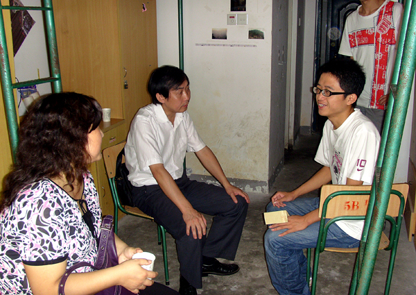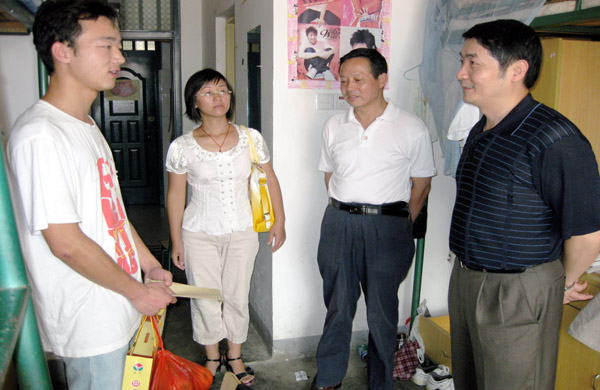 学校领导向重灾区学生表达了金秋的美好祝福,并送上了中秋慰问品和慰问金。他们在宿舍与学生亲切交谈,关切地询问重灾区学生家庭恢复生产及灾后重建情况,并通过他们向远在千里之外的学生家长致以节日的问候。赵书记勉励来自地震重灾区的同学们要自强自立,学好本领,将来更好地建设家乡,回报社会,他希望家庭受灾的学生放宽心,学校会尽力帮助他们解决实际困难。汪院长也对学生提出了殷切的期望,他表示学校会密切关注同学们的学习、生活和成长,鼓励学生安心学习,在安庆师范学院好好发展。