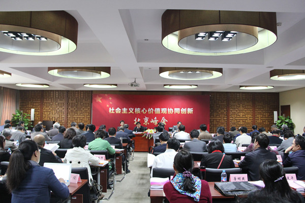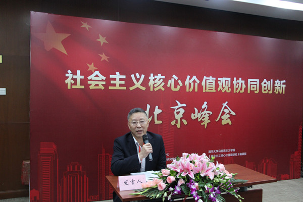 峰会由社会主义核心价值观协同创新中心、北京高校中国特色社会主义理论研究协同创新中心(清华大学)、清华大学马克思主义学院和《社会主义核心价值观研究》编辑部联合举办。教育部社会科学司副司长徐艳国、北京市教育工委副书记郑登文和清华大学党委副书记邓卫出席开幕式并致辞,社会主义核心价值观协同创新中心主任、清华大学马克思主义学院吴潜涛教授主持开幕式。来自清华大学、中国人民大学、北京师范大学、复旦大学、武汉大学、南京大学等高校以及《人民日报》、《光明日报》、《思想理论教育》等报刊的百余名专家学者参加了本次峰会。与会代表围绕“社会主义核心价值观”这一主题,分别就习近平社会主义核心价值观思想研究、社会主义核心价值观基本理念研究、社会主义核心价值观自信研究、培育和践行社会主义核心价值观主渠道主阵地建设研究等专题进行深入探讨。(陈志超)