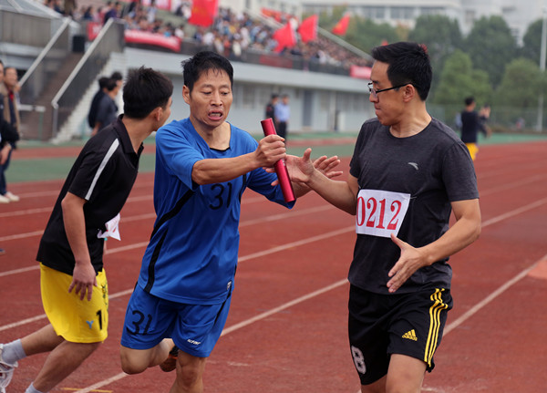 不少教工夫妻同时参加了本届运动会,外国语学院的李伟老师和财务处的余淙艺老师就是其中一对,余淙艺夺得了女子青年组800米的第一名,同时她也是女子100米的冠军。“平时挺喜欢运动的,会经常跑跑步锻炼一下。”余淙艺说,她和李伟是商量好一起参加运动会的,李伟老师在教工男子青年组400米和1500米的比赛中均获得第四名。“我每天都会打排球,两个人经常也会一起跑步,”李伟说,“运动会是能够让老师、学生一起开心的活动,参加运动会让我有一种重回学生时代的感觉。”