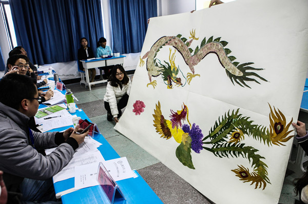 由于篇幅过大,如何拼接好成为团队的难题。团队8位同学,每天至少花费4个小时,历时一个多月才将作品拼接完好。让评委称赞的是,《龙凤呈祥》用标本做成龙凤的样子,并且将寓意上升到社会主义发展的理念上。意寓这社会和谐发展,龙凤呈祥。