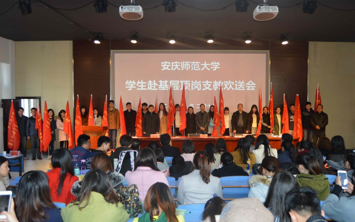会上,组织部负责同志宣读了成立金寨县、望江县、怀宁县顶岗支教学生党员临时党支部的文件;教务处负责同志介绍了学校关于顶岗支教学生学业管理方面的暂行办法;体育学院负责同志代表支教指导教师发言;文学院学生金晶代表支教学生做了表态发言。(文/王国红 图/李巍)