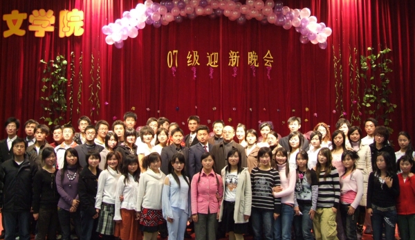 11月28日晚,文学院07级迎新晚会在龙山校区图书馆东报告厅举行。此次晚会是在文学院团总支指导下,由文学院学生会举办。整场晚会节目形式丰富,内容精彩,高潮迭起,其中有一半以上的剧本由学生原创。