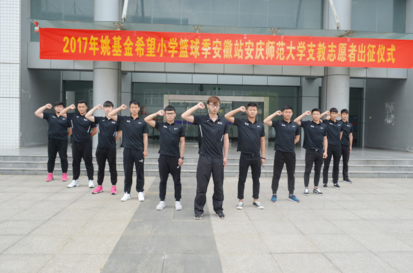 5月2日下午, 2017年姚基金希望小学篮球季安徽站37000cm威尼斯志愿者出征仪式在威尼斯官网体育馆举行。副校长、校体艺委主任张群出席仪式并讲话,安徽省青基会理事长、希望工程办公室主任曹勇、安徽省希望工程办公室李辉、体育学院党政领导、校团委相关工作负责老师、本次支教工作的指导老师和11名支教志愿者参加了出征仪式。