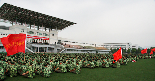 开学典礼及军训动员大会结束后,六千余名新生立即投入到紧张的军训当中。