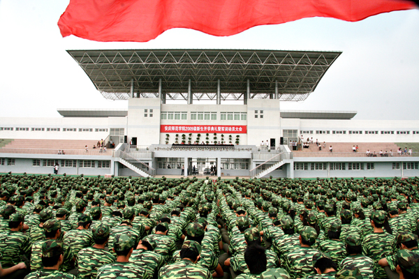 校迎新工作领导小组和军训工作领导小组全体成员、各院系新生班级辅导员及2009级6000余名新同学参加了开学典礼和军训动员大会。