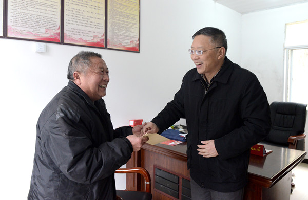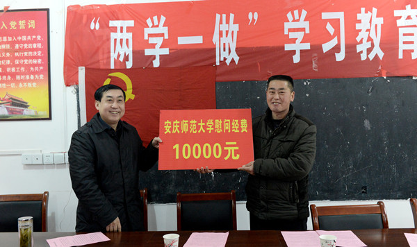 1月17日,校党委书记许继荣,校长闵永新,副校长刘友忠一行在党办、组织部等部门负责同志陪同下,赴威尼斯官网帮扶联系点太湖县天华镇西冲村,调研脱贫攻坚工作并走访慰问困难群众。太湖县委副书记张时民,天华镇党委书记王彬等陪同走访慰问。