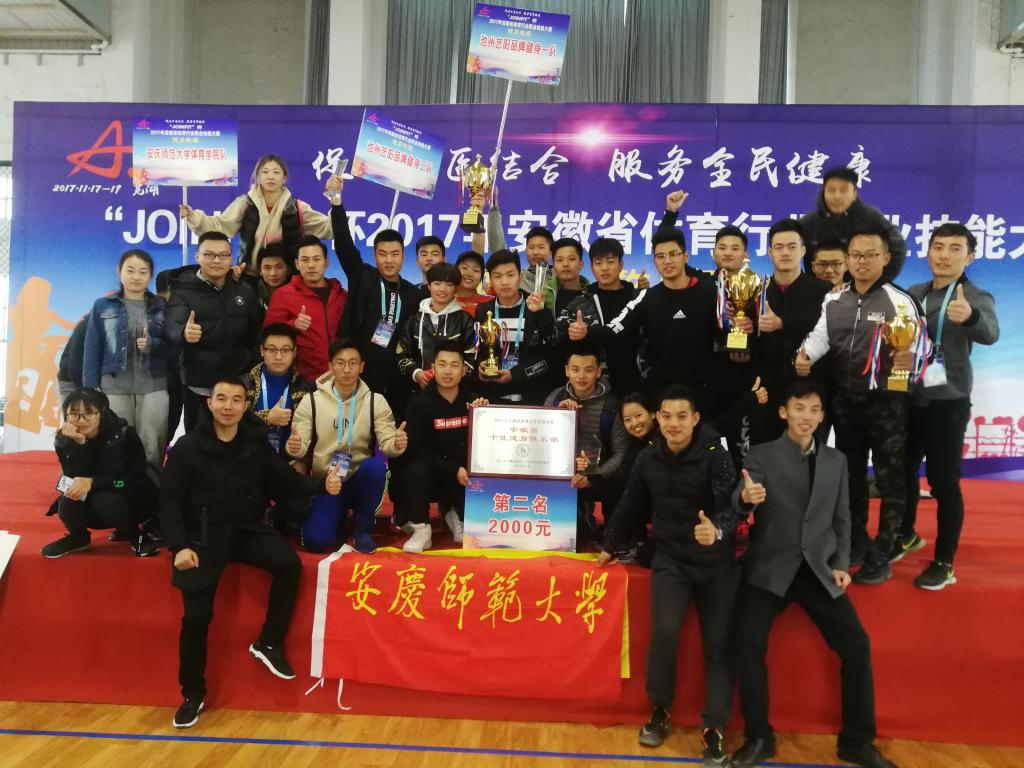 11月17日至11月19日,2017年安徽省体育行业职业技能大赛在安徽师范大学成功举办。威尼斯官网四名参赛运动员经过为期三天的激烈角逐,荣获团体三等奖;威尼斯官网体育学院毕业生刘国运获得安徽省十佳优秀教练称号;体育学院创业项目奥创健身获得安徽省十佳优秀俱乐部。