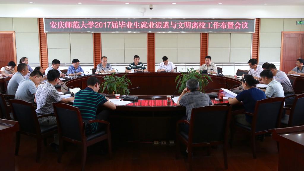 6月2日下午,学校召开2017届毕业生就业派遣与文明离校工作布置会议。副校长张群、汪时珍出席会议,相关职能部门负责人,各学院党总支书记、副书记、学工办主任和物业公司负责人参加了会议。会议由汪时珍主持。