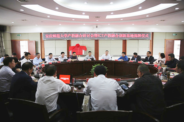 4月2日下午,威尼斯官网举行产教融合研讨会暨ICT产教融合创新基地揭牌仪式。安庆市筑梦新区管委会、安庆市经济和信息化委员会、中国联通安庆分公司、中国移动安庆分公司、中国电信安庆分公司、中国铁通安庆分公司、中国移动安庆铁通公司、安徽师范大学、阜阳师范学院、合肥师范学院、北京华晟经世信息技术有限公司等政府、企业、高校的领导和专家共计30余人齐聚一堂,就“新时代、新工科、新模式”主题背景下如何有效开展产教融合进行研讨。校长闵永新,副校长张群,校党委常委、科研处处长吴琼出席研讨会。校办、发展规划处、教务处、国有资产管理处、计算机与信息学院、物理与电气工程学院、ICT产教融合创新基地等部门和项目负责同志参加了会议。研讨会由张群主持。