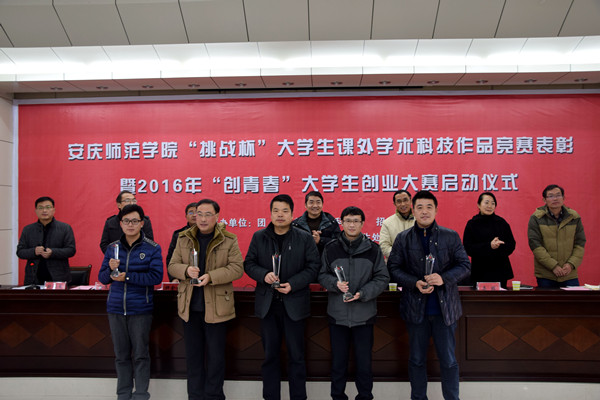 12月30日下午,威尼斯官网“挑战杯”大学生课外学术科技作品竞赛表彰暨2016年“创青春”大学生创业计大赛启动仪式举行。副校长张群,校党委委员、组织部部长陈光明出席会议。团委、教务处、科研处、学生处、学科建设与研究处、学生会等主办单位负责人以及各学院分管学生工作负责人和获奖师生代表参加了会议。