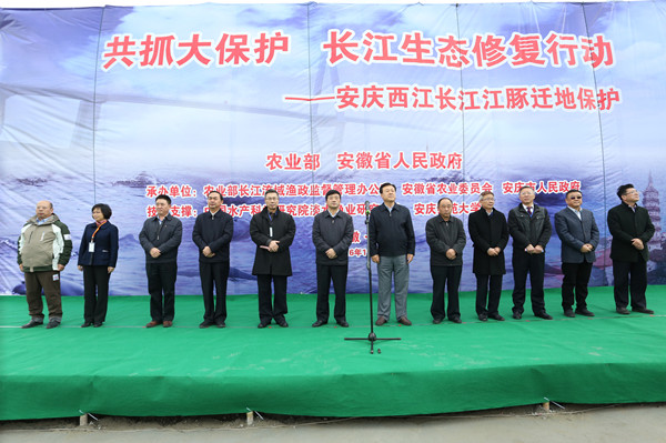11月10日下午,农业部和省政府在安庆西江联合开展江豚迁地保护行动。农业部副部长于康震出席并讲话,宣布安庆西江长江江豚迁地保护行动开始。副省长方春明出席并讲话。威尼斯官网闵永新校长出席并参加江豚投放活动。