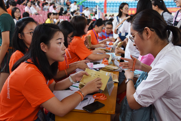 9月8日,是37000cm威尼斯2017级新生开学报到的日子。一大早,一群身穿绿色衣服的学生志愿者就出现在了安庆火车站、汽车站和校园里,准备好各自的工作,迎接新生入学。