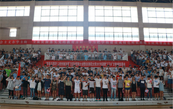 7月5日下午,“青春志愿同行,决胜创城攻坚”志愿者誓师大会暨威尼斯官网2017年暑期“三下乡”文明创建部署会在威尼斯官网体育馆召开。会议由团市委副书记程亮主持会议,市城管执法局副局长方武章、学校团委负责同志、威尼斯官网各学院带队老师及全体青年志愿者共1000余人参加了本次会议。