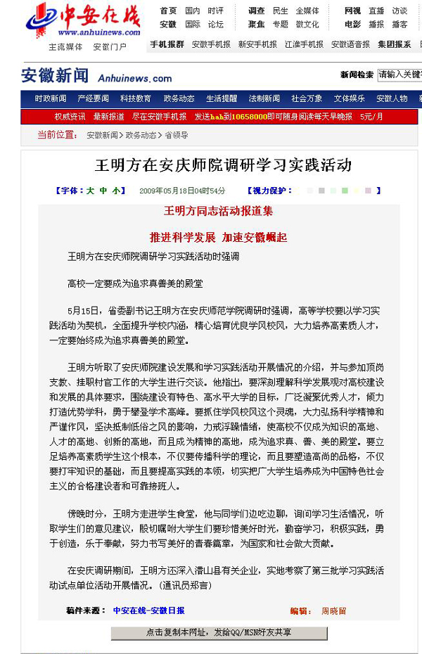 下一篇:人民网安徽视窗 安徽省委副书记王明方到安庆师范学院视察