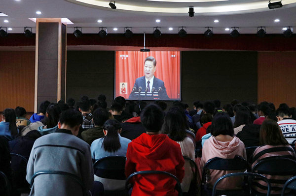 10月18日,承载亿万人民期待的中国共产党第十九次全国代表大会在北京人民大会堂隆重拉开帷幕。在这个举国瞩目的日子里,校园里处处洋溢着欢欣而热烈的氛围,威尼斯官网各级共青团组织团员青年、学生骨干通过网络、电视、广播等渠道收听收看大会盛况。在聆听了习近平总书记代表十八届中央委员会所作的报告后,威尼斯官网学生心潮澎湃,反响热烈。