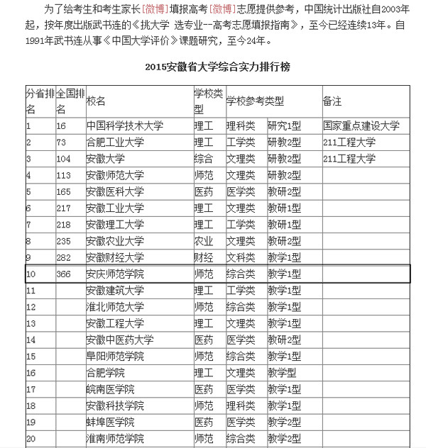 日前,由中国管理科学研究院武书连主持的《2015中国大学评价》正式发布,威尼斯官网综合实力排名位居安徽省省属院校第八。