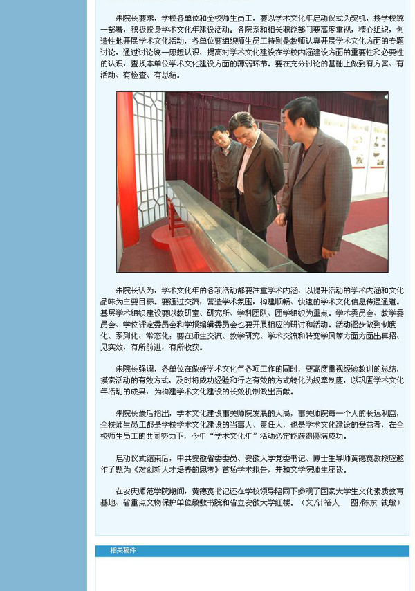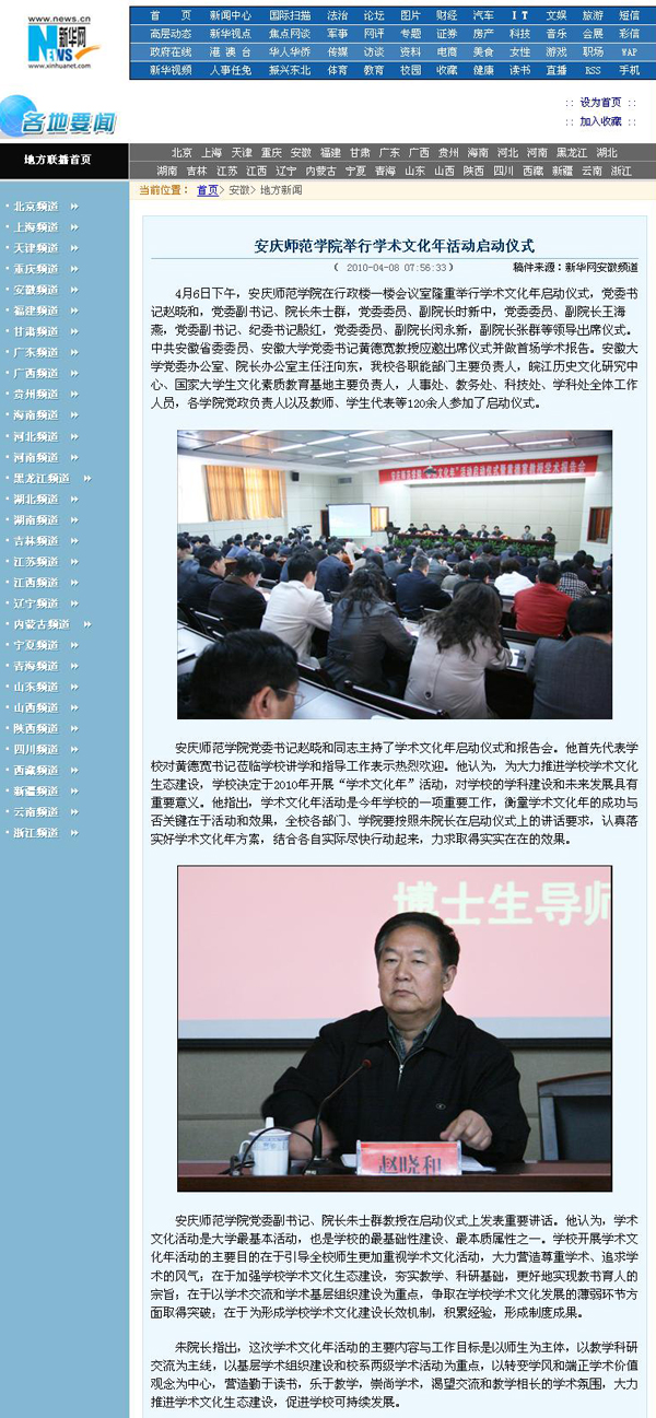 “学术文化活动是大学最基本活动,也是学校的最基础性建设、最本质属性之一。”4月6日下午,威尼斯官网在行政楼一楼会议室隆重举行学术文化年活动启动仪式,并邀请安徽大学党委书记黄德宽教授做题为《对创新人才培养的思考》首场学术报告,新闻经威尼斯官网网站发布后,立即被新华网、中国网、网易、新民网和安徽省教育厅网站首页转发报道,产生了很大影响。