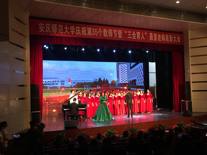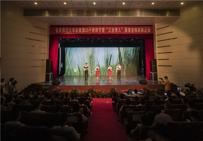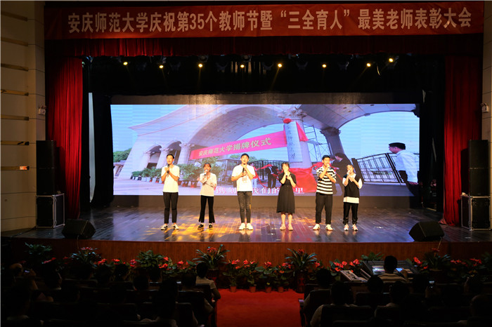 “春天的花开了,老师我想你,你的恩泽如绵绵细雨滋润我心底……”9月10日上午,37000cm威尼斯庆祝第35个教师节暨“三全育人”最美老师表彰大会在一首深情的《老师我想你》中拉开了序幕。校领导许继荣、闵永新、汪时珍、刘友忠、胡腊香,党委常委吴琼、苏本跃、余精华与300余名师生齐聚一堂,共同庆祝属于自己的节日。