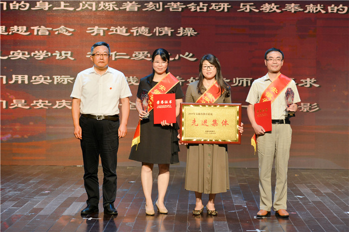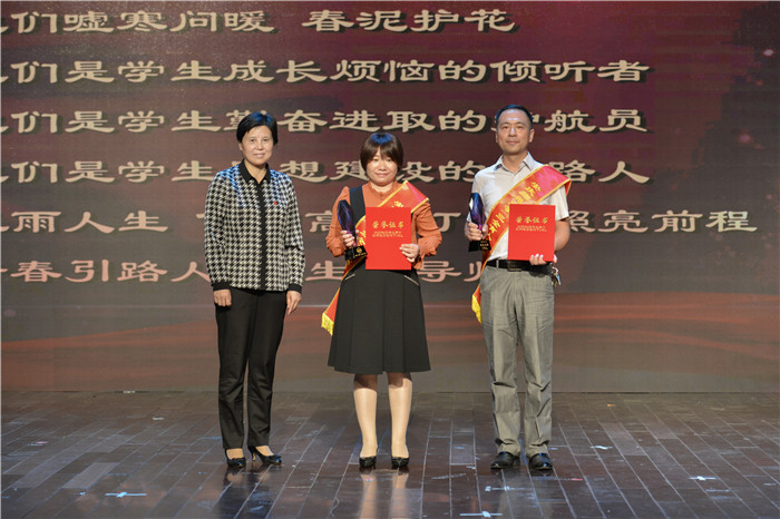 全体校党政领导为所有获奖教师和教育工作者颁发奖杯和荣誉证书。会场一片庄重神圣,时时响起的热烈掌声是对优秀教师和教育工作者的认可和赞赏。