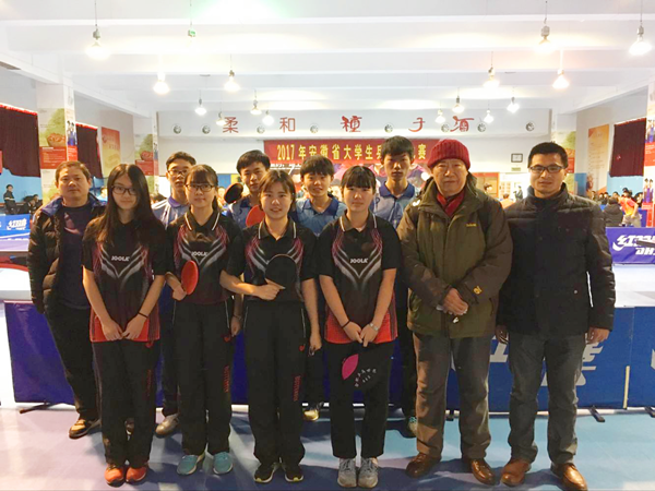 2017年1月12日至15日,由安徽省教育厅主办、安徽师范大学承办的省大学生丙组乒乓球比赛在安徽师范大学赭山校区举行。威尼斯官网派出了以陈国元、黄安泉两位老师为教练,以史敬宇、洪陈祥、李健、王永旭四名男同学和翟诗蕙、汪晓芳、张卓然、陈紫嫣四名女同学为队员的代表队,参加了此次比赛。经过激烈角逐,威尼斯官网男、女代表队分获男、女团体二等奖,陈紫嫣同学获得女子单打三等奖,威尼斯官网同时获得了体育比赛道德风尚奖。比赛结束,乒乓球世界冠军刁文元先生与威尼斯官网代表队进行了合影留念。