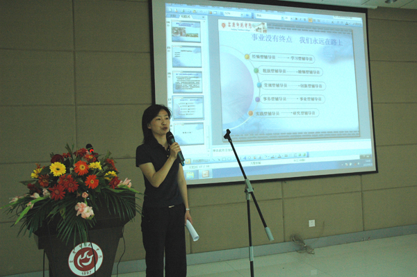 在与学生交流过程中,辅导员工作不会是一帆风顺的,会有学生们的不理解、不认同,有时甚至是责难。音乐学院辅导员汪小林老师认为:“正是在解决这些问题的过程中,辅导员老师们清楚地感受到自身能力和素质的不断进步和提升。”人文与社会学院辅导员董思老师是2007年刚刚走上工作岗位的年轻辅导员。在口头展示中,董老师讲述了在面对与自己年龄相仿的学生时,她所经历的困惑、迷茫到逐渐与学生成为知心朋友的历程。刚参加工作时,董思老师相信严厉会赢得学生的尊敬和进步。直到有一次,有个学生不服气地争辩起来。董老师这才意识到,仅仅严厉是不够的,要推己及人,将心比心,站在学生的角度去分析问题,才能解决问题。渐渐地,董老师在工作上想法越来越多、办法越来越多,班级活动有声有色,学生成绩也稳步提高。又一次,班级学生在篮球比赛中赢得了胜利,并整齐地喊出了“董老师生日快乐”的欢呼声。董老师动情地说:“在我几乎忽略生日的日子里,这欢呼声对于我来说,就是职业生涯中最高的荣耀!”