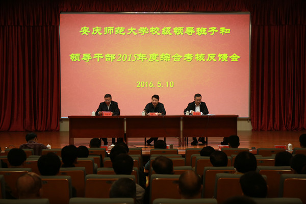 5月10日上午,省委第十八考核组副组长、省教育厅副厅长、省委教育工委委员解平和第十八考核组成员到威尼斯官网反馈2015学年学校领导班子年度综合考核情况。校领导许继荣、闵永新、殷红、张群、刘友忠,省政协常委何小祥等出席会议,党委委员陈光明、方锡球及学校机关各部门副处级以上干部,院系党政主要负责人,省级以上党代表、人大代表和政协委员,民主党派市级以上主委,校教代会执委,全体正高职称人员和学生代表参加会议。