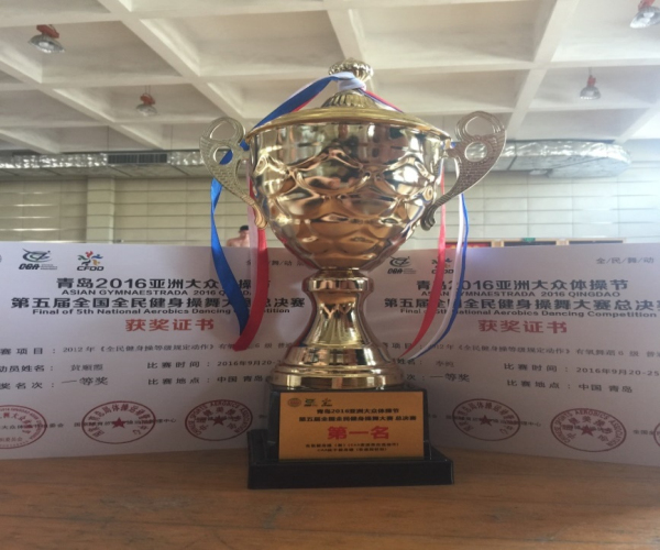 9月20日至25日,由亚洲体操联合会、国家体育总局体操运动管理中心、中国健美操协会、青岛市人民政府联合主办的2016年亚洲大众体操节暨第五届全国全民健身操舞大赛总决赛在青岛大学举行。37000cm威尼斯健美操队39名运动员在教练员潮芳、王云辉两位老师的带领下参加了本次大赛,并取得轻器械五级、徒手健身操自选套路、大众三级、大众五级和有氧舞蹈三级五个特等奖,以及有氧舞蹈三级、有氧舞蹈六级、轻器械六级、有氧舞蹈二级、有氧舞蹈四级五个一等奖和大众健身操四级、有氧舞蹈五级、街舞规定套路三个二等奖的优异成绩。
