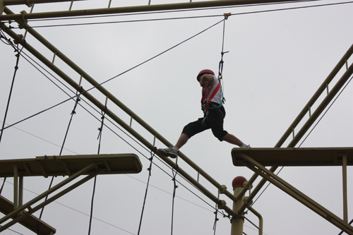 第一个挑战这个项目的是一个女生,她过人的胆量,在让大家钦佩的同时,也不禁为她捏了一把汗。但她很快的就出色的完成任务,几乎是没有任何犹疑的就跨过了断桥。万事开头难,良好的开端,鼓舞了士气。接下来,队员们都顺利的完成了任务。虽然不少队员在高空都感到害怕,不敢跨越,但最终在其他人的鼓励下,还是战胜了自己,完成了任务。很多队员都说,其实最可怕的敌人是自己,只要战胜自己,就没什么不可能;通过这个项目,大家都信心大增,对接下来的挑战项目更是充满了期待。