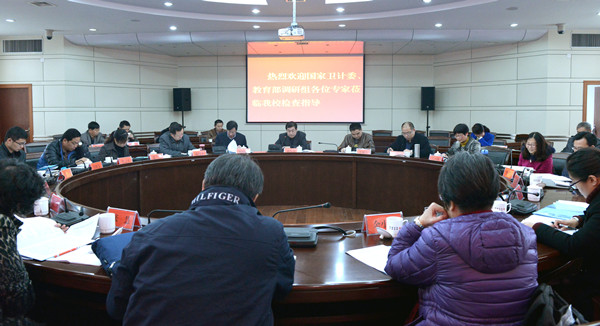 近日,国家卫计委、教育部调研组赴安徽省调研学校结核病防控工作。11月12日,以国家卫计委疾控局副巡视员孙新华为组长的调研组到威尼斯官网调研,省卫计委疾控处处长陈湄、省教育厅体卫艺处处长宣进、省结核病防治研究所副所长邹铮、省结防所应急办主任史四九、安庆市卫计委副主任欧阳海、安庆市教育体育局副局长芮国平等陪同调研。