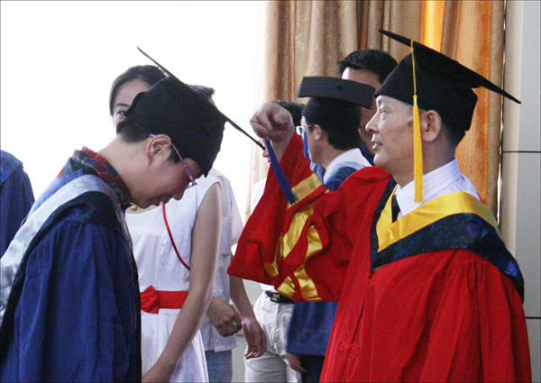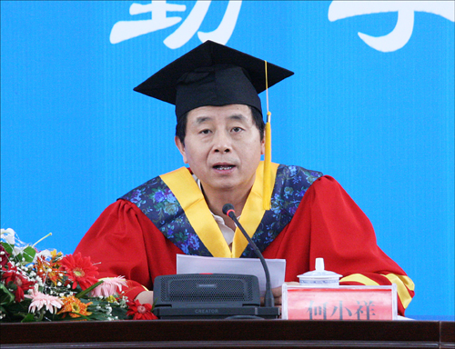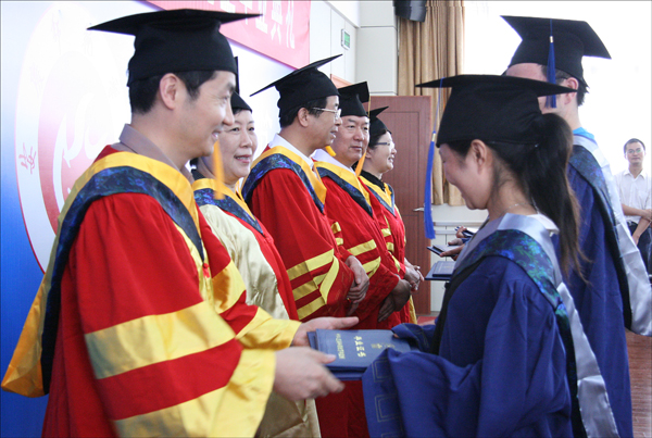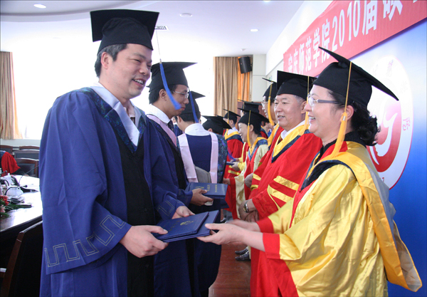 校硕士学位评定委员会主任、党委副书记、院长朱士群教授宣读2010届获得硕士学位人员名单,并为全体毕业硕士研究生拨穗。党委书记何小祥,省政协常委赵晓和,副院长王海燕,党委副书记、纪委书记殷红,副院长张群等校领导为44位硕士研究生颁发毕业证书和学位证书。