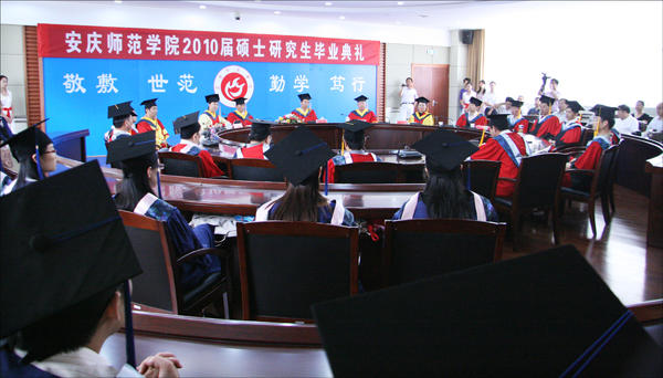 6月26日上午,在龙山校区行政楼的二楼会议室,一位身穿蓝色硕士服的女生饱含深情地发言。她是来自“无机化学”硕士点2010届的硕士研究生高媛。会议室内,坐满了和她一样身着硕士服的同学。这里正在为44名硕士研究生举行毕业典礼。另一名来自“科学社会主义与国际共产主义运动”硕士点的2010届的硕士研究生张文学也作为学生代表在典礼上发言。