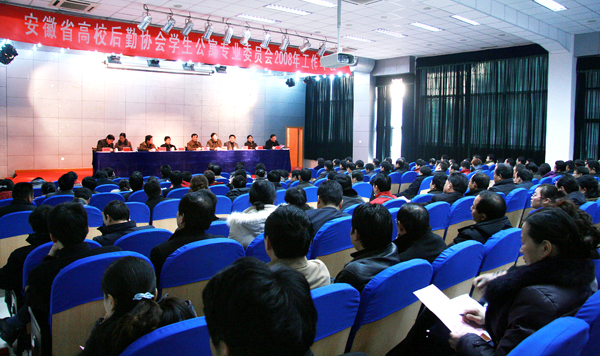 省教育厅副巡视员张培银代表省教育厅就如何推进我省高校后勤改革,进一步提高后勤服务和保障水平发表了重要讲话。安徽省高校后勤管理中心主任徐世昌全面总结了我省高校后勤改革的经验和教训,并对下一步如何继续推进改革,做好高校学生公寓的管理和服务工作提出了具体的意见和要求。安徽省高校公寓专业委员会主任、安徽师范大学后勤集团总经理孙东华总结了2008年“寓专会”的工作、安排布置了2009年“寓专会”工作。来自皖北、皖南和合肥三片的“寓专会”片长单位和部分高校代表在会上分别进行了交流发言。