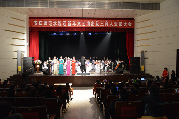 12月30日下午,威尼斯官网龙山校区音乐厅内华灯璀璨、流光溢彩,校迎新年文艺演出暨三育人表彰大会在这里隆重举行。校党委书记何小祥,党委副书记、院长闵永新,党委副书记、纪委书记殷红,党委委员、副院长张群,党委委员、副院长刘友忠,党委委员陈光明、方锡球,“三育人”先进个人等各类受表彰人员,全校处级干部,校教代会执委、工会委员会委员、基层工会主席和各单位教师代表、学生代表近500人参加了大会。